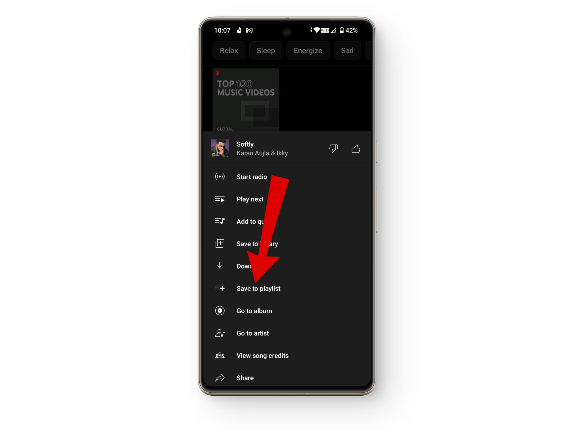- Open up the YouTube Music app and select the song that you want to add to a playlist.