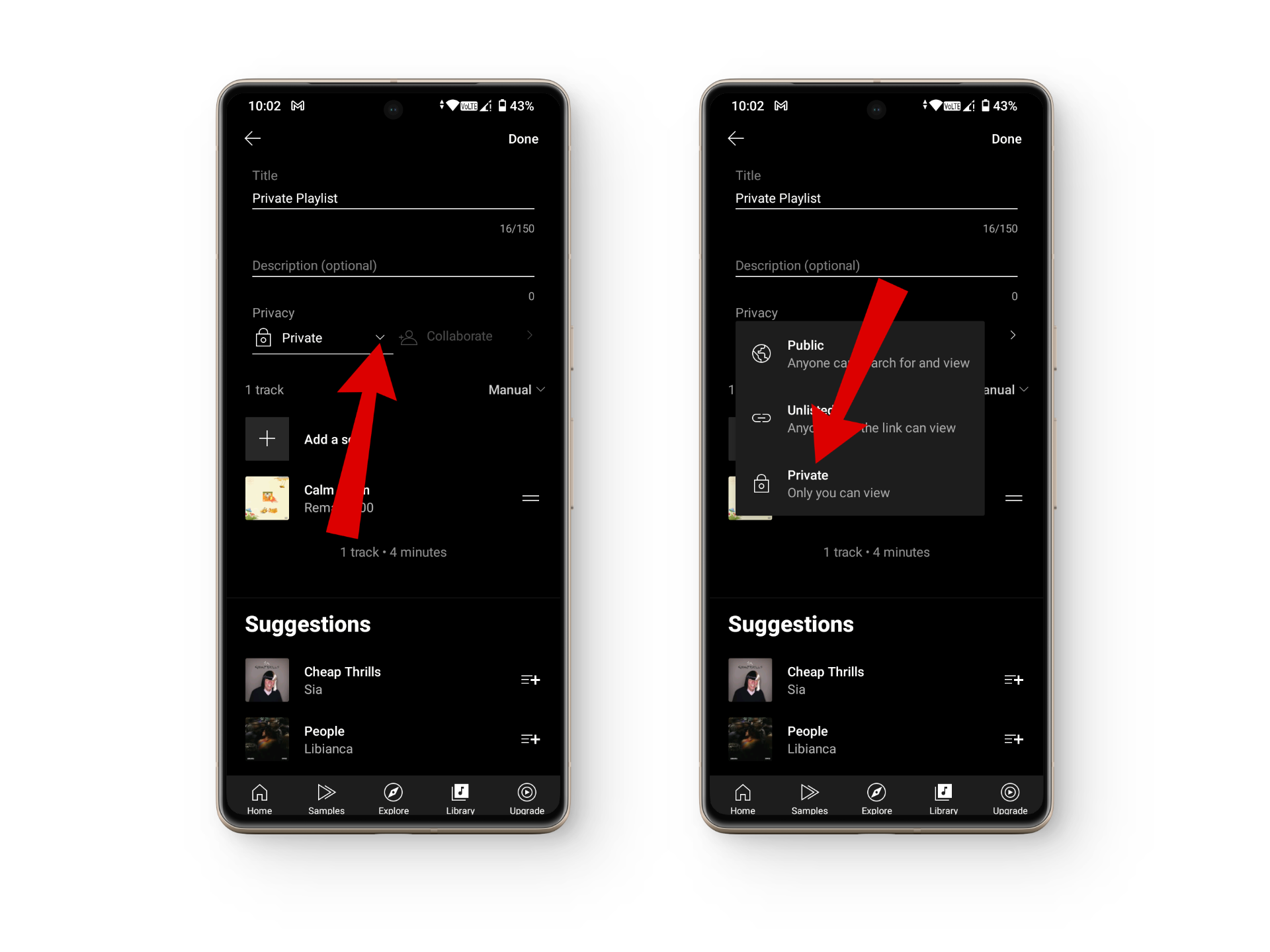 Here’s how to set privacy settings when making YouTube Music Playlists on an iPhone or Android: