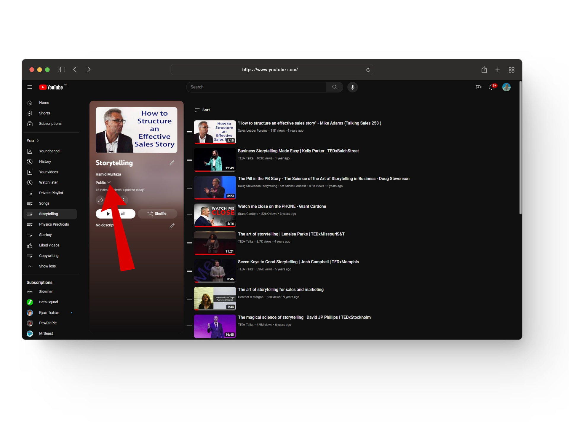 Adjust your playlist settings - Next, click on the arrow next to the Public option.
