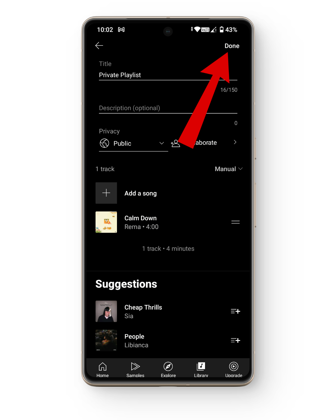 Change privacy settings - Finally, tap the Done button to change your music playlist’s privacy settings.