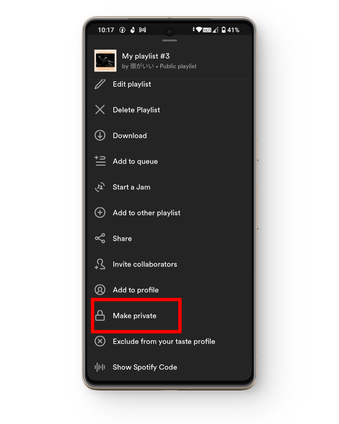 Click on the small arrow - From the menu, click on the Private option to change your playlists from public to private.