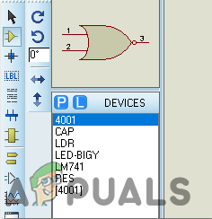 ISIS - When the new schematic appears, click on the P icon on the side menu. This will open a box in which you can select all the components that will be used.