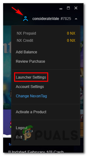 - Once the uninstallation procedure is complete, return to the Nexon launcher app and click on your account name (top-right corner of the screen).