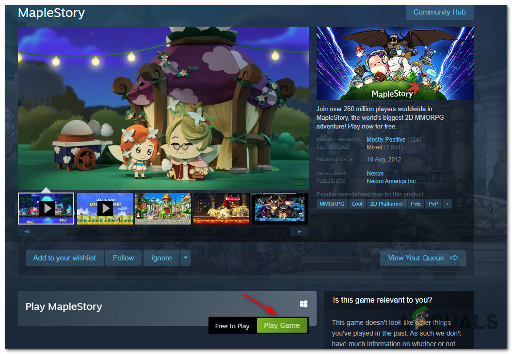- Nexon MapleStory glitch – According to some affected users, a glitch with the main Nexon launcher can be the underlying cause of this issue. A lot of affected users have confirmed that they managed to fix this particular issue by launching the MapleStory through the Steam installer instead of relying on Nexon.