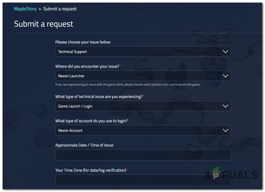 - Account-related issue – If every other confirmed fix fails in your case, you should start considering the possibility that you might be dealing with some kind of account data corruption that can only be resolved by a Live support agent. In this case, the only viable fix is to open a support ticket with the MapleStory team.