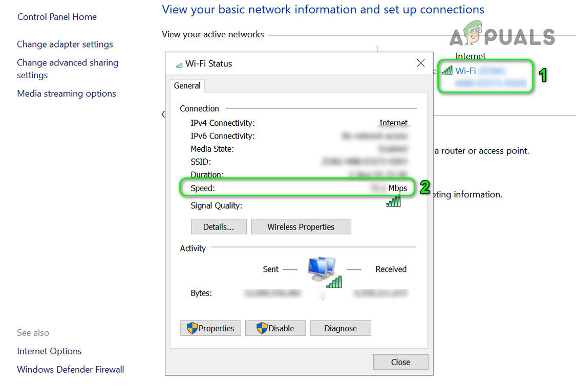 Open Network and Sharing Center - Now note down your network speed and then navigate to the Advanced tab of the Network Card Properties in the Device Manager (step 1).
