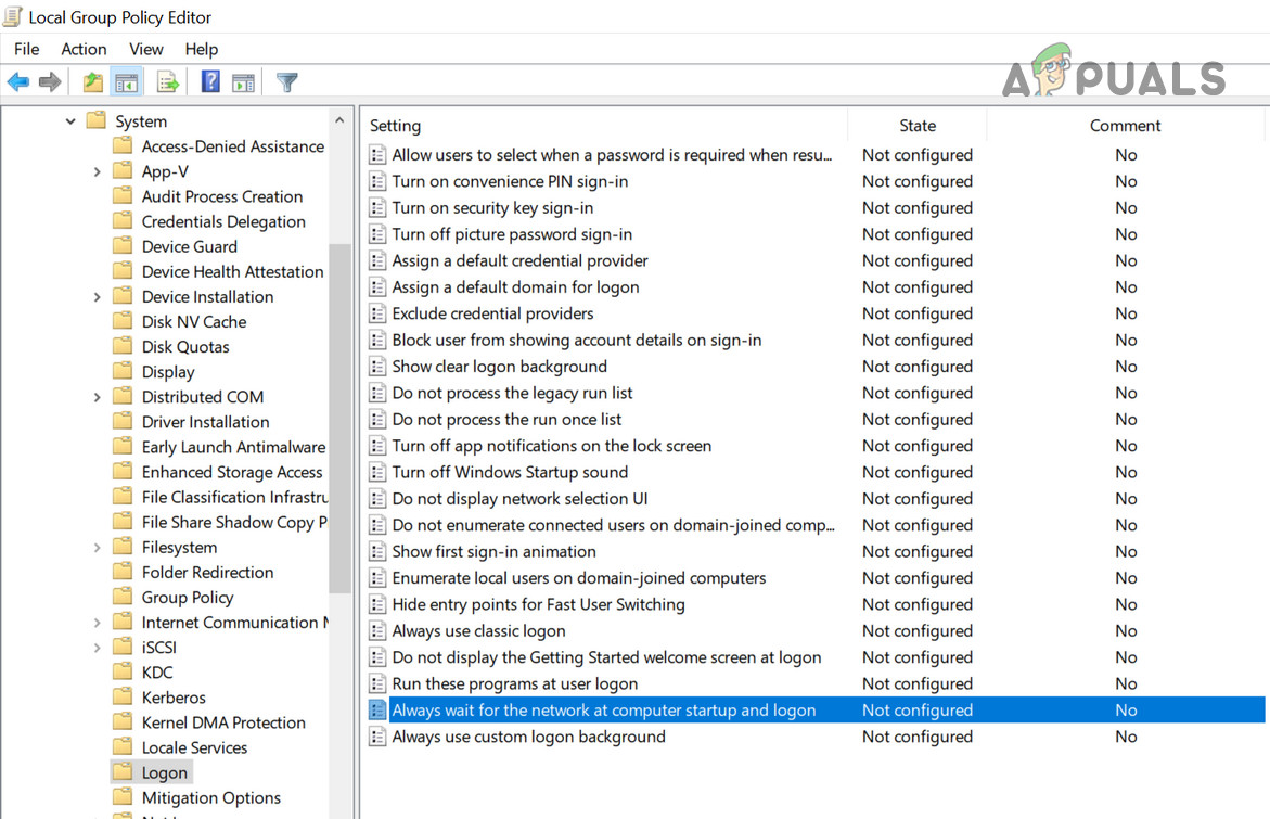 There can be different group policy settings that may trigger the issue at hand. For example, if your system has a fast SSD as a system drive, then your system can boot even before the network connection is established. In this scenario, editing the relevant group policy settings may solve the problem.