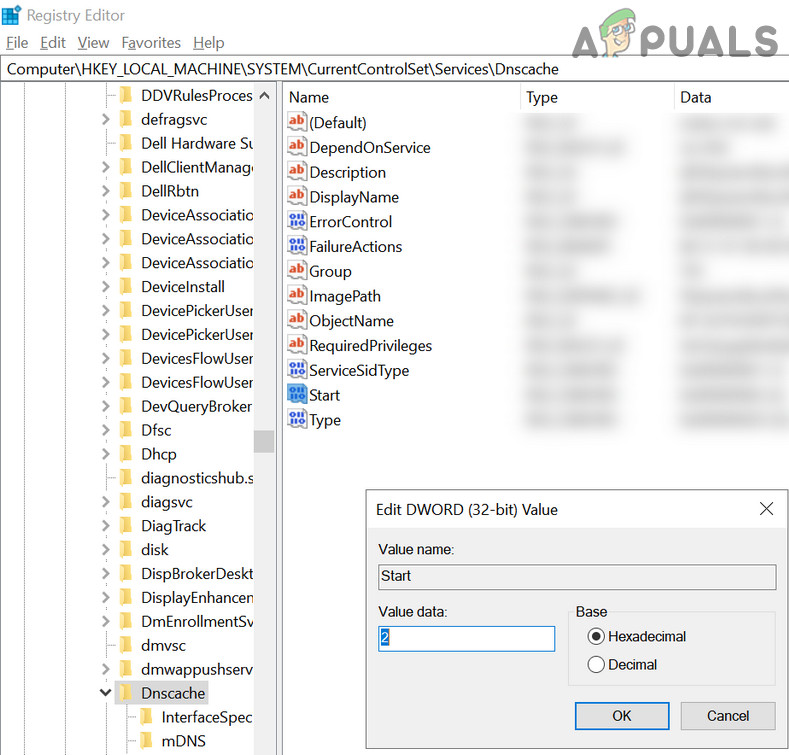 Computer\HKEY_LOCAL_MACHINE\SYSTEM\CurrentControlSet\Services\Dnscache