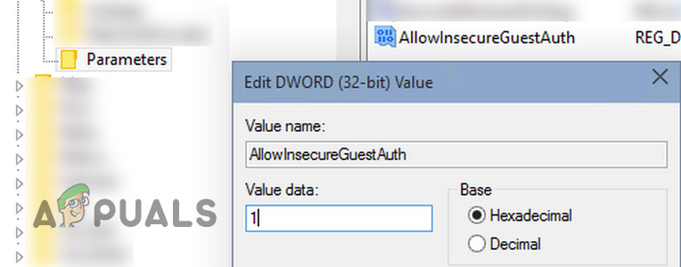 Create a DWORD (32-bit) Value named AllowInsecureGuestAuth and set its value to 1 at the following: