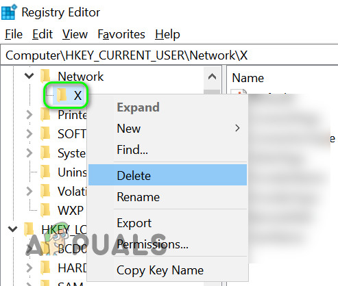 - Then delete the folder with the name of your mapped drive (e.g., the drive letter X, Y, Z, etc.).