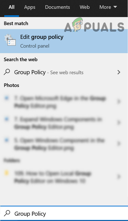 - Press the Windows key and in the Windows Search, type Group Policy. Then select Edit Group Policy.