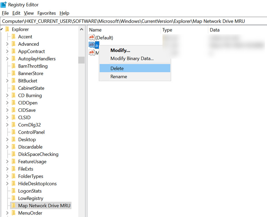 Computer\HKEY_CURRENT_USER\SOFTWARE\Microsoft\Windows\CurrentVersion\Explorer\Map Network Drive MRU