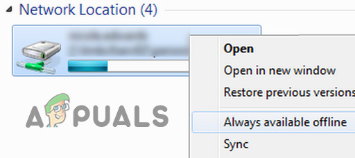 Select Always Available Offline for the Network Drive - Wait for the process to complete & right-click on the network share.