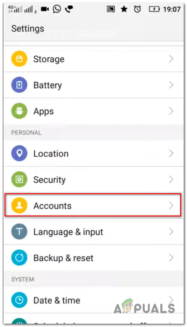 Accessing the account menu - After you’re inside the Accounts menu, tab on the entry associated with Google.
