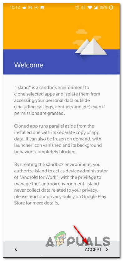 - After the download is complete, open the Island app and start out by accepting the Terms of Licensing.