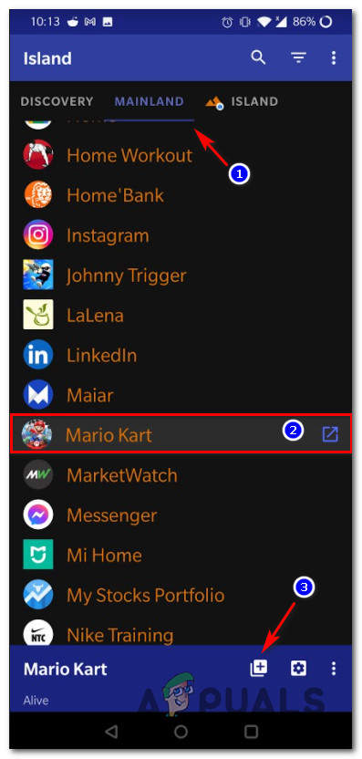 According to some affected Android users, you can also hope to fix this particular issue by essentially duplicating the Mario Kart Tours installation with an application like Island.