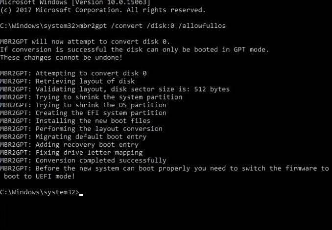 - Once your system has started, it will have converted the targeted disk from MBR2GPT with no data loss.