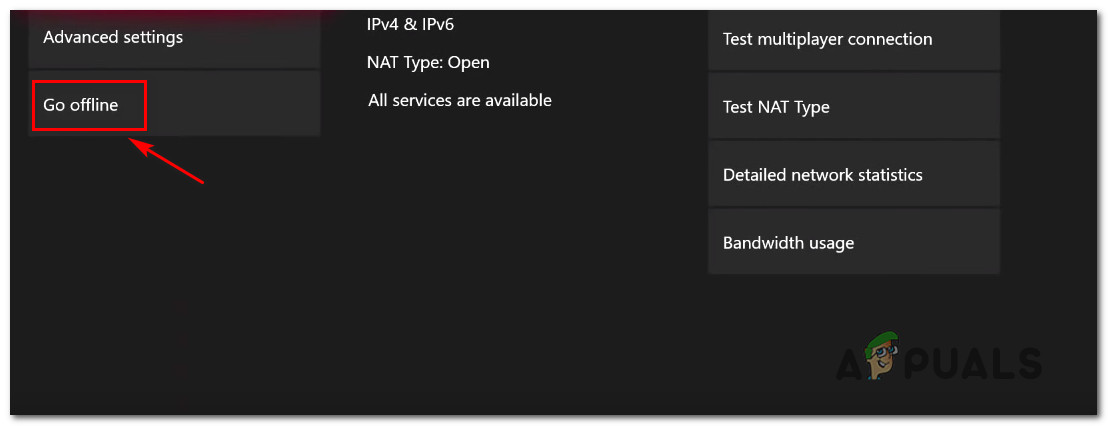 - Once you’re inside the correct Network menu, select the Network Settings menu and then select Go Offline (from the left-hand side).