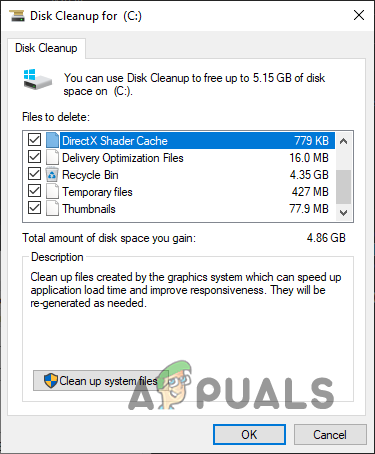 The Disk Cleanup feature will take a minute or two to scan the disk for junk. After scanning, it will show you a list of all the junk files/folders on the disk.