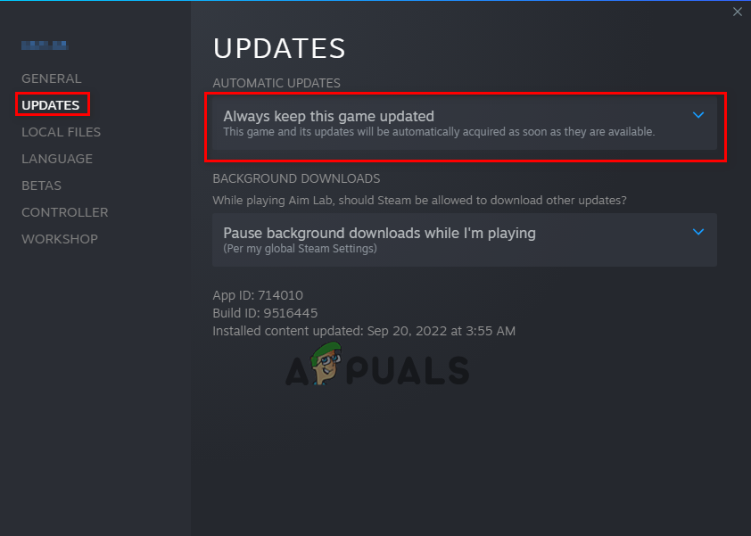 - Put a checkmark next to “Always keep this game updated.”