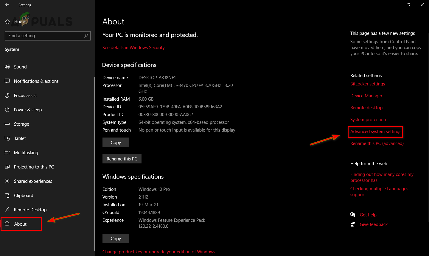 - Select the “Advanced system settings” option on the right side of the window.