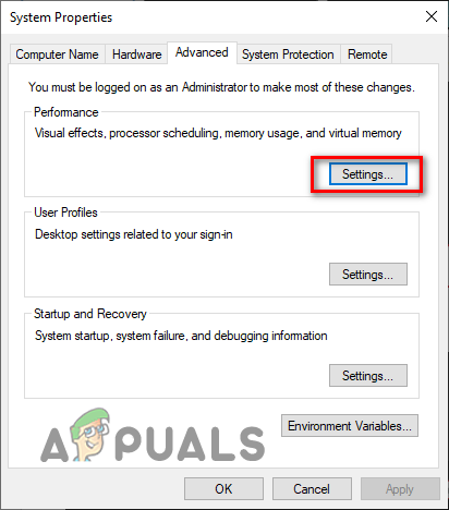 Opening Advanced System Settings - Under Performance, click on Settings.