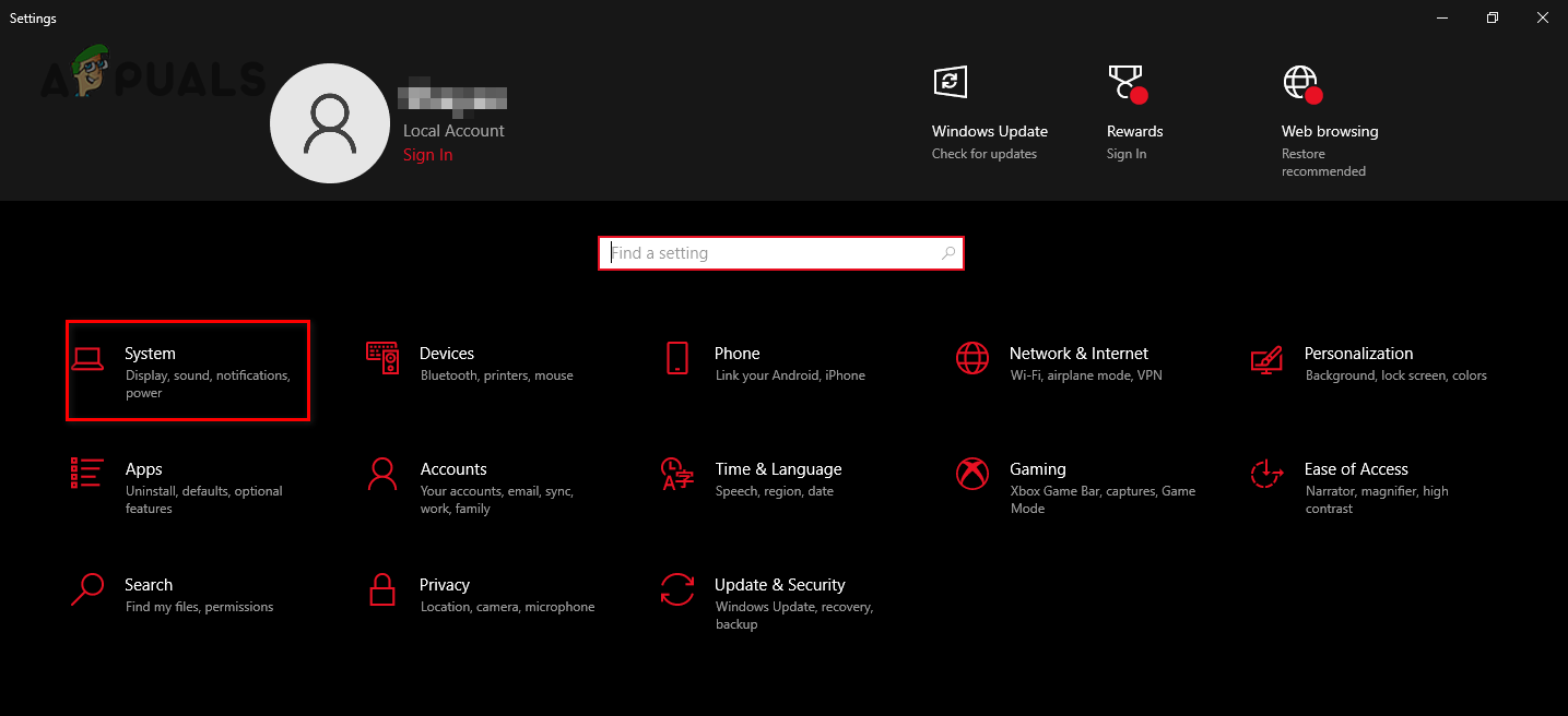 Opening Windows Settings - Click on the System option.