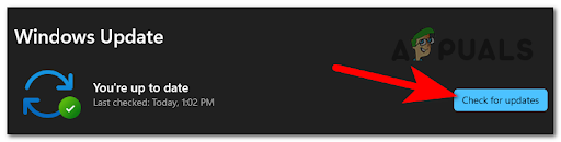 Accessing the Windows Update menu - Then click on Check for updates in case there aren’t any pending updates. Wait until it is checked if there are any new updates.