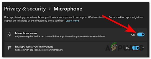 - Disabled microphone access – In many cases, this problem was caused by the fact that the microphone’s access was disabled. You can fix this by making sure that microphone access is enabled from Windows Settings. You can check the Privacy & security section, Sound Properties, or Device Manager.