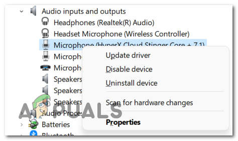 Opening up Device Manager - Once you are inside the Device Manager, click on the arrow next to Audio inputs and outputs to expand the drop-down menu.