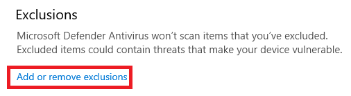 - Click Add an exclusion and select the Mage Arena installation folder.