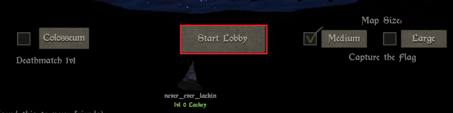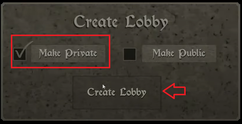 - Select Make Private and click Create Lobby. Note: The settings menu can only be accessed during a match.