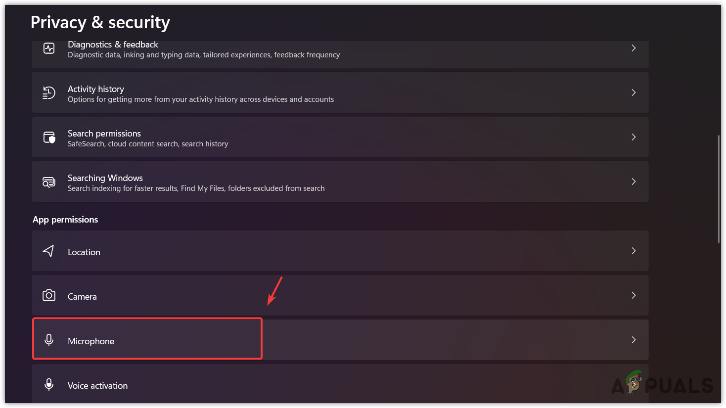 - Navigate to Microphone settings.