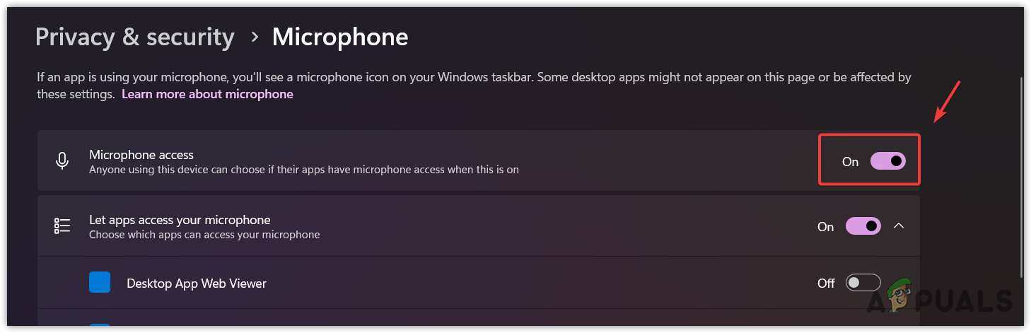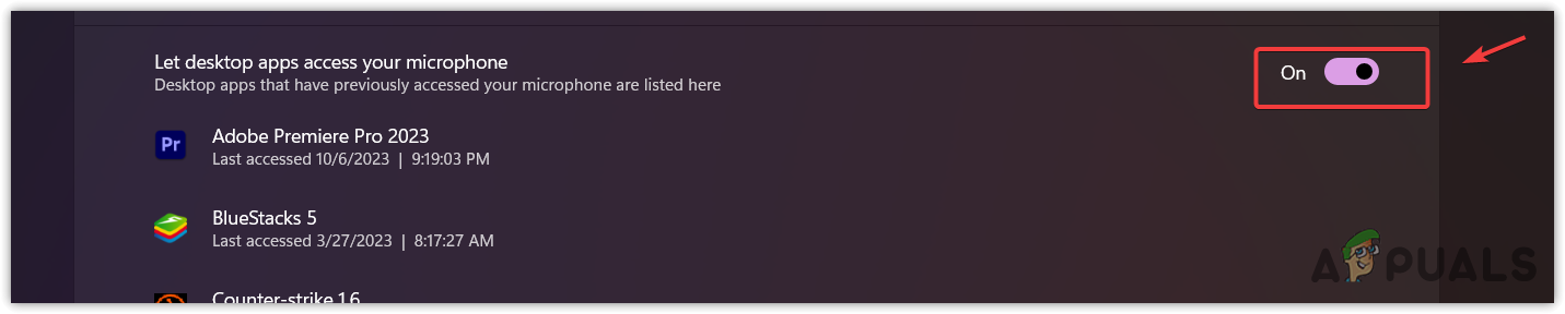 - Here, make sure that the Microphone Access is enabled.
