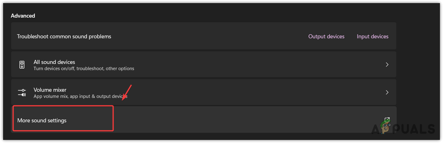 - Scroll down to the bottom and click More Sound Settings.