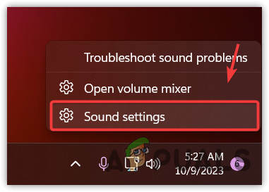 - Right-click the Speaker icon from the bottom right and select Sound Settings to open it.