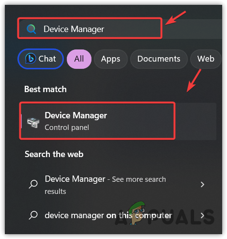 - Press the Win key and type Device Manager.