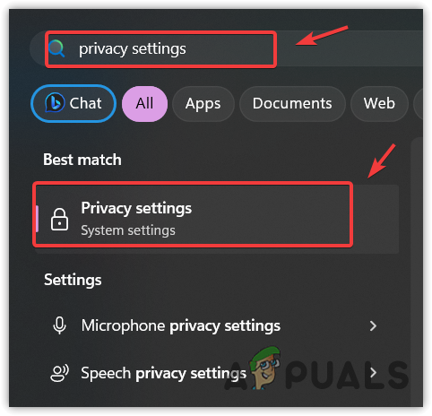 - Press the Win key and type Privacy Settings.