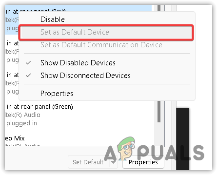 - Then, click Set as Default Device.