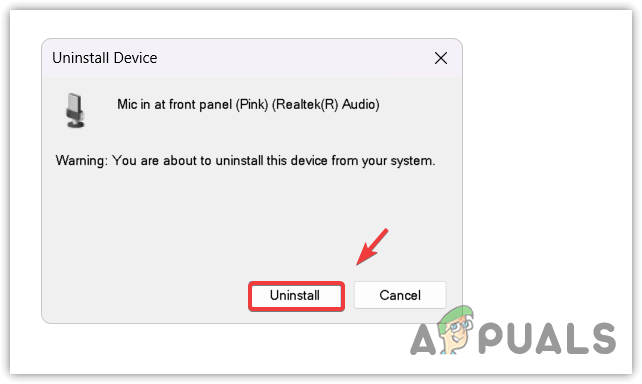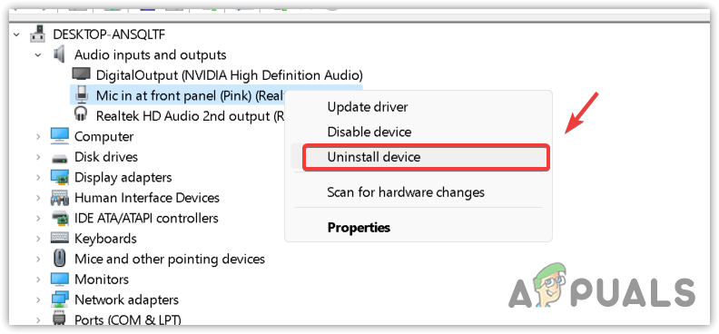 - Expand the Audio inputs and outputs, right-click the Microphone device, and select Uninstall.