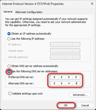 Your ISP’s DNS might be slow, unreliable, or blocking essential endpoints required for Microsoft authentication. Replacing it with a trusted public DNS, such as Google’s or Cloudflare’s, ensures faster, more secure, and regularly updated name resolution.