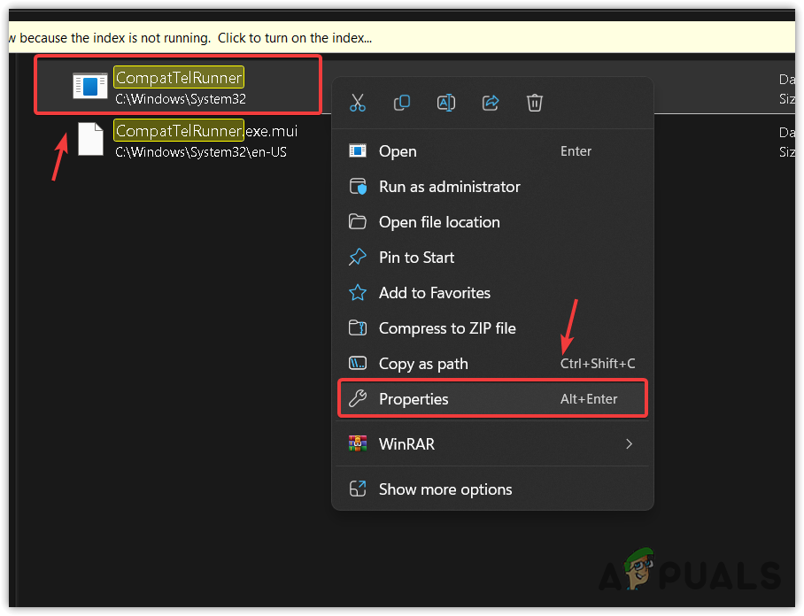 - Here, search the CompatTelRunner and hit Enter to find the file.