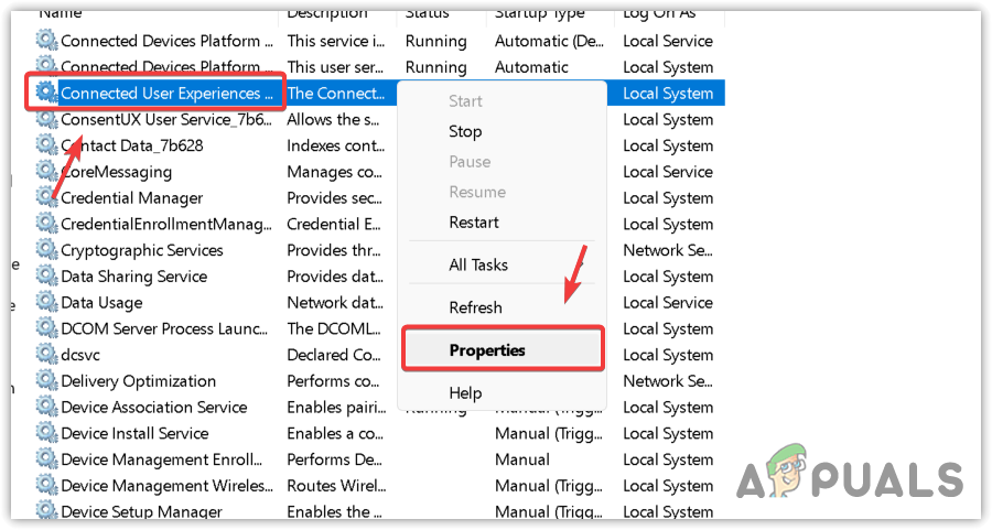 - Here, find the service with the named Connected User Experiences and Telemetry.