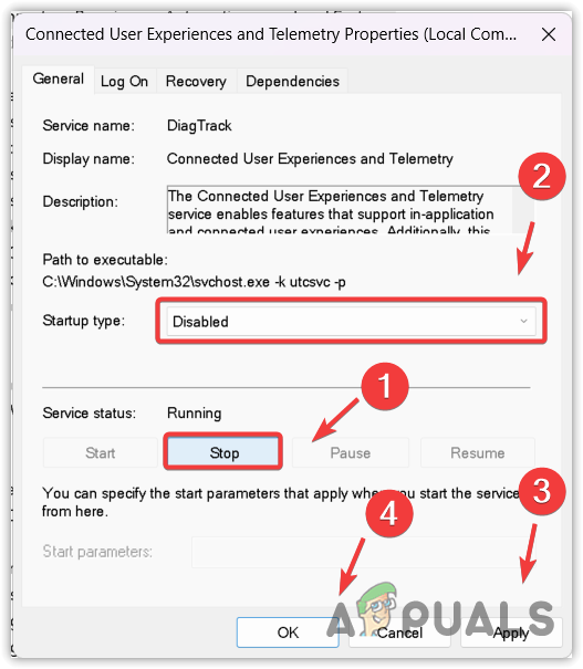 - Once done, close the registry editor and move on to disable the Connected User Experiences and Telemetry service.
