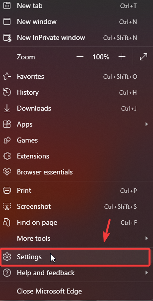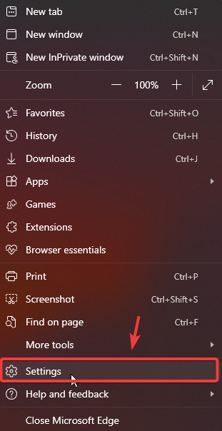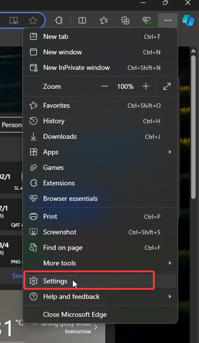 - Open Microsoft Edge, click the three dots in the top-right corner, and select Settings.
