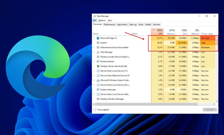 If Microsoft Edge is consuming a significant amount of CPU resources, it is typically because the browser or its specific features are using a lot of processing power. This usually happens when Edge is running multiple tasks, which can significantly impact CPU performance.