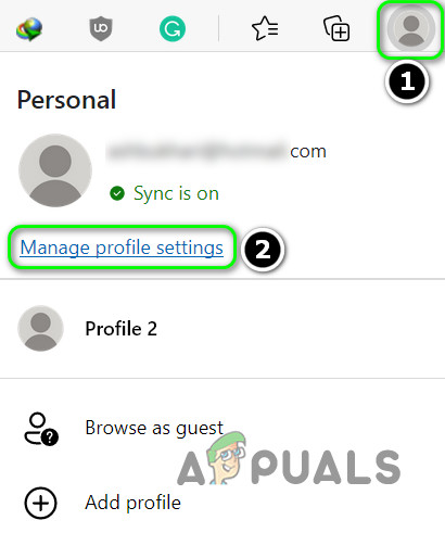 - Launch the Edge browser and click on the user icon (near the top right of the screen).