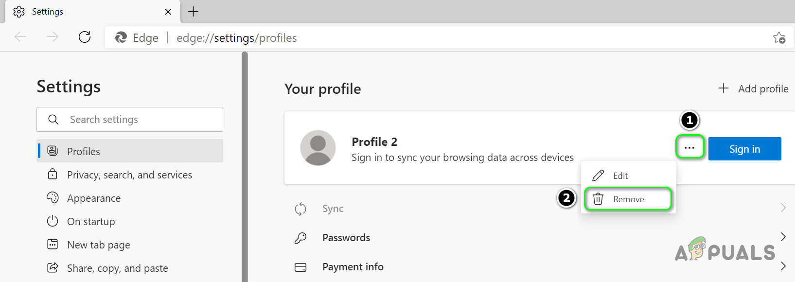 Remove Other Profiles from the Edge Browser