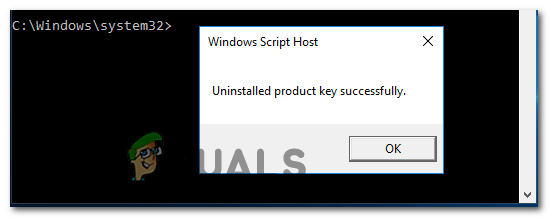- Once you see the success message “Uninstall Product key successfully” message, you just confirmed that the operation was successful. When this happens, you can safely close the elevated CMD prompt.