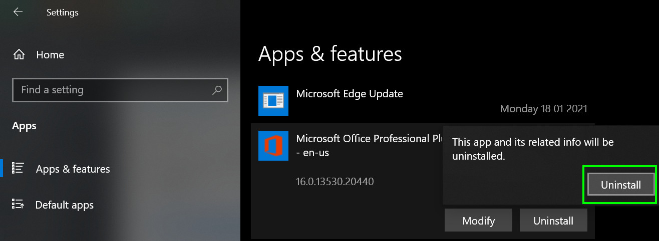 - Then click on the Uninstall button and confirm by clicking on Uninstall.